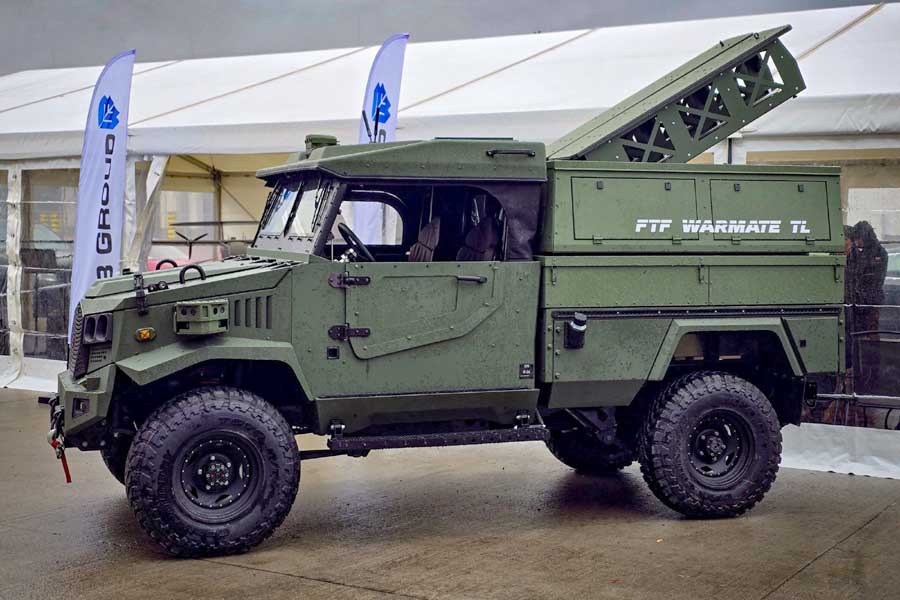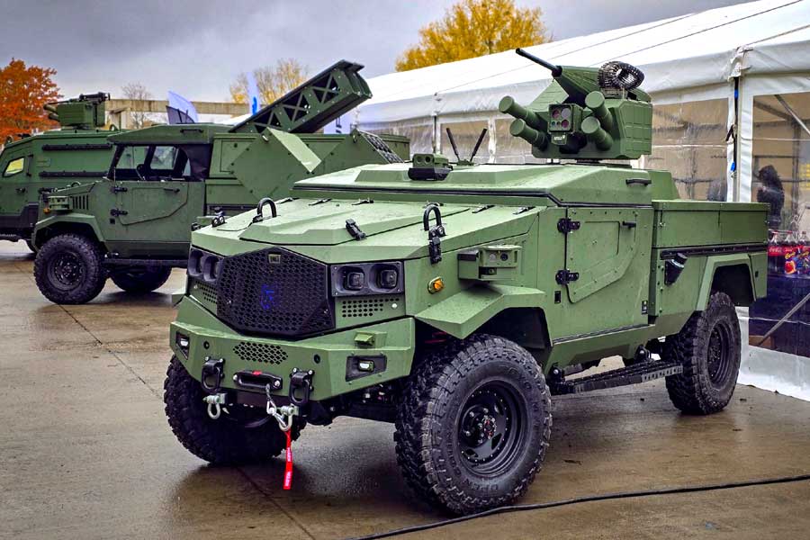 When operating on public roads, the manned-unmanned platforms function as standard light 4×4 all-terrain vehicles driven by operator-drivers. Once in combat mode, the operators transfer to the command vehicle, from which they remotely control the unmanned platforms from a safe distance. The vehicle cabin is lowered, and the platform switches to remote-control mode. Depending on mission requirements, the unmanned ground platforms can carry various payloads. The NATO Defence and Security Committee delegation observed platforms equipped with ZMU-05 remote weapon modules, WARMATE TL loitering munition launchers, and MN light scatterable mine launchers.
