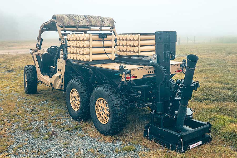 The Scorpion Light mobile mortar system will also incorporate an advanced digital fire control system that enables rapid, accurate targeting and re-aiming with minimal crew intervention. Marines can use the rapid-fire control system to engage multiple targets quickly and efficiently during combat operations, elevating operational efficiency, while the expanded payload of the MRZR Alpha 6×6 variant allows for 48 mortars to also be transported.