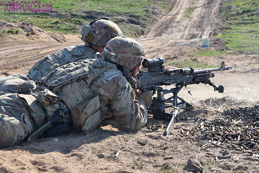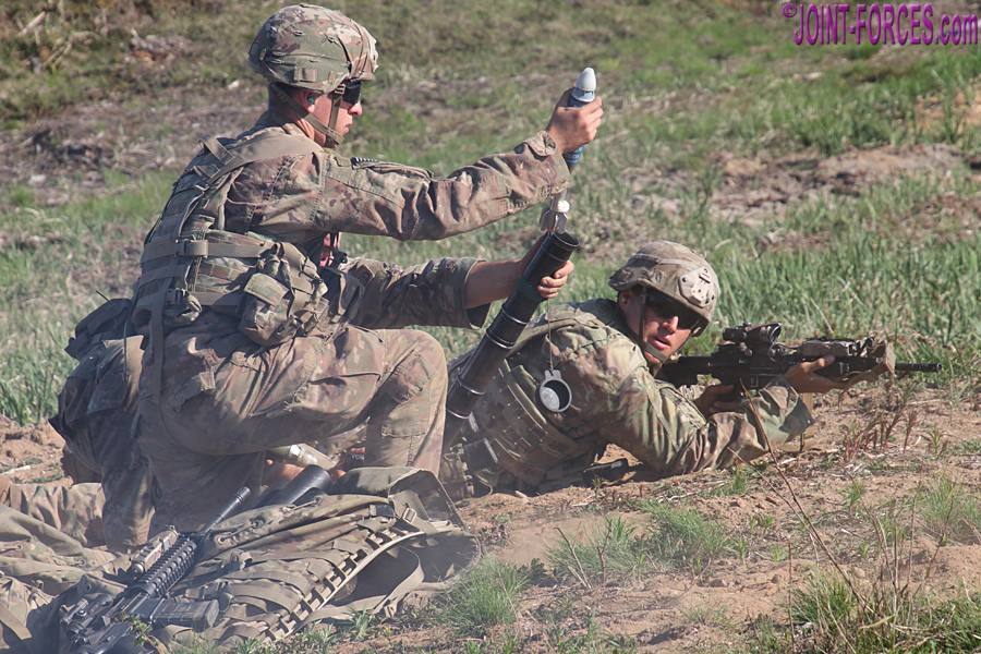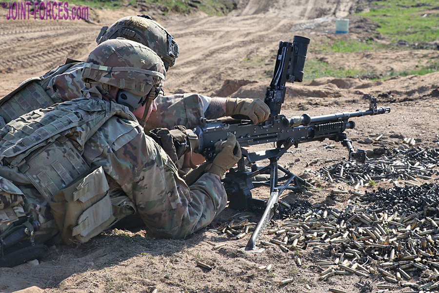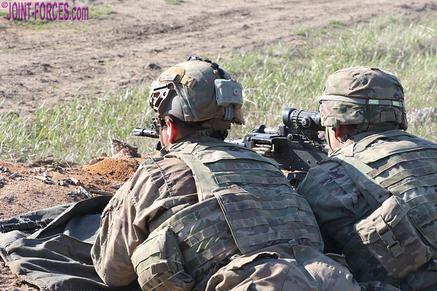 At the invitation of USAREUR-AF (US Army Europe and Africa) Public Affairs, we joined 1-508 PIR on the Estonian Defence Force Central Training Area, the Tapa Polygon, a couple of days after the air assault phase to follow their Heavy Weapons Squads as they conducted a live fire attack on enemy positions with artillery support from the airborne gunners of Charlie Battery, 1-319 AFAR. A 39-strong US Army infantry platoon consists of three rifle squads of nine troops apiece, a heavy weapons squad of nine, and a platoon headquarters consisting of a platoon leader, platoon sergeant and a radio telephone operator. The accompanying photos mostly show the heavy weapons squads from two of the 1-508 PIR platoons which parachuted onto Nurmsi Airfield in the early hours of 8th May after flying across the Atlantic from North Carolina.