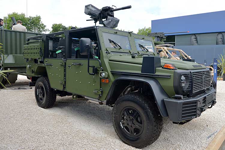 Recipient of a July 2023 joint order from Germany and the Netherlands, for up to 3,058 vehicles, the Caracal is a specialist variant of the Model Series 464 Mercedes-Benz G-Class designed primarily for airborne and airmobile formations. Carl Schulze has been focussing on the vehicles displayed at the current edition of Eurosatory in Paris and as we know a high proportion of our readership are interested in 4×4 military utility vehicles we felt a brief ‘In Focus’ was warranted.