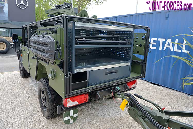 The Caracal airborne platform is the product of a cooperation between Rheinmetall, Mercedes Benz AG and ACS – Armoured Car Systems.