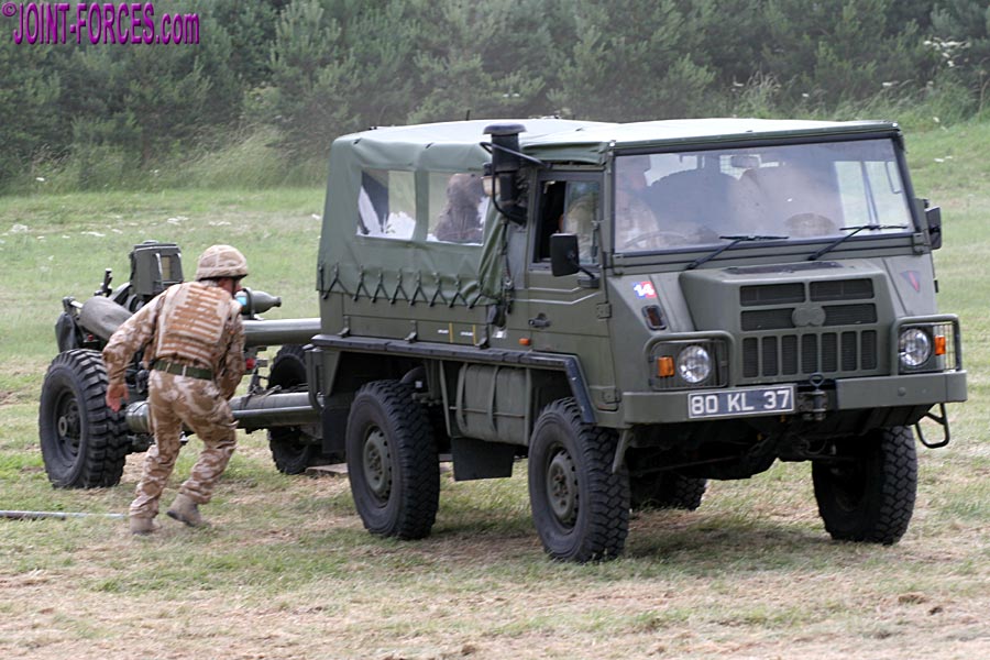 Officially designated TRUCK MEDIUM UTILITY HEAVY DUTY GENERAL SERVICE SOFT TOP STEYR-DAIMLER-PUCH by the MoD, the Pinzgauer 716M was mainly intended to be a prime mover for the L118 105mm Light Gun and an ammunition resupply vehicle for the same weapon system. Normally one Pinzgauer, with driver and commander in the front seats and two gun crew in the rear, towed the howitzer and was accompanied by a second vehicle transporting two more gunners and ammunition as well as towing a trailer for the gun crew’s kit.