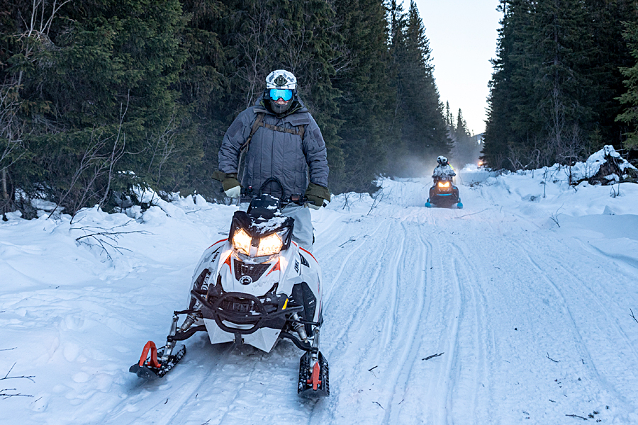 This was a very full, busy, eventful and informative day, not to mention being great fun in the cold and stunning environment of middle Sweden. Our final activity was to head back to Bydalen on our snowmobiles with a couple of stops for photo opportunities and a leg stretch and warm up ‘Scandinavian Shoulder Shrug’ to get the blood flowing a bit faster. It was a bittersweet trip as we knew we were heading to the end of this fantastic and very real experience. Others like me we wanted to have a real go on the machines but knew we would only get back faster, so decided to go slower to enjoy it all for a bit longer. The aim of the event, set up by the participating companies and countries, was to let us all try the layering systems of the NCU for real and in authentic conditions. Without question this was a success and fun as well.