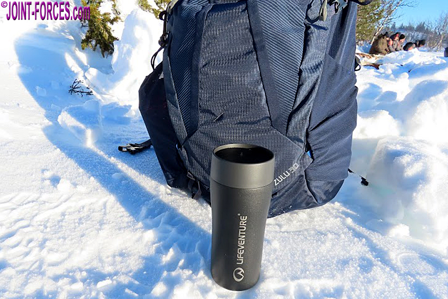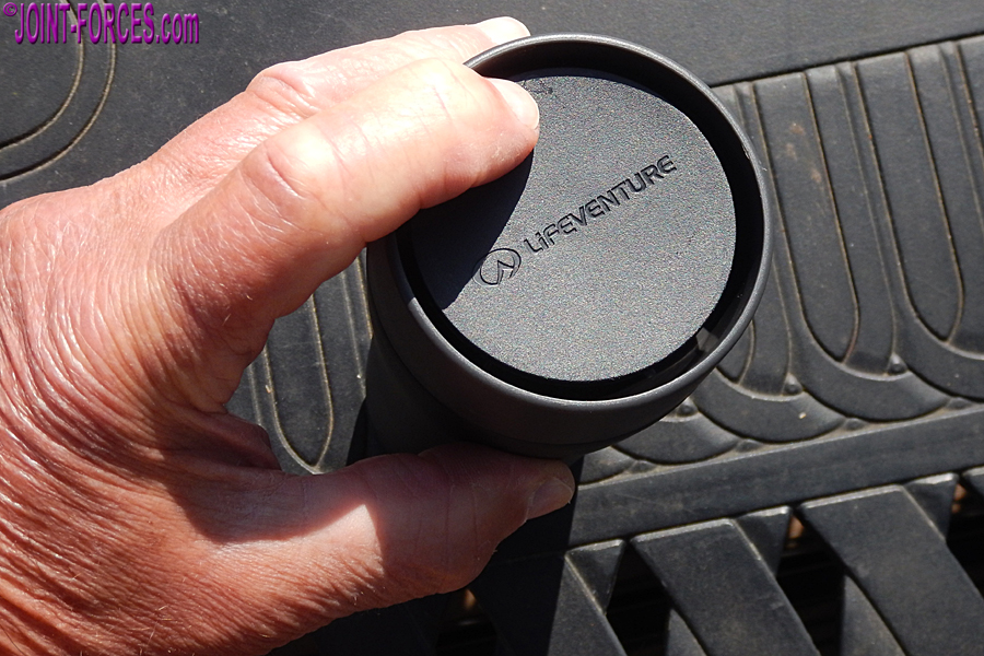 One feature I really like is the rubber non-slip base, which makes it safe to perch on a desk or vehicle bonnet and even more secure on that handy rock when outdoors ~ a nice touch. Mine is a ‘tactical black’ and there are four other colours available and its capacity is 350ml or 12 oz. This metal mug is well insulated, using vacuum and a copper coating to keep your brew hot or your cold drink cold. I even used this one in Sweden to prevent my cold drinking water from freezing in the well sub-zero temperatures. All-in-all, a very good and practical mug.