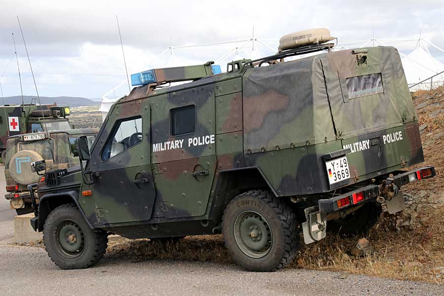 Bundeswehr up-armoured G-wagen on the earlier Mercedes-Benz base model spotted during Ex. NOBLE JUMP 2023 in Sardinia [© Bob Morrison]
