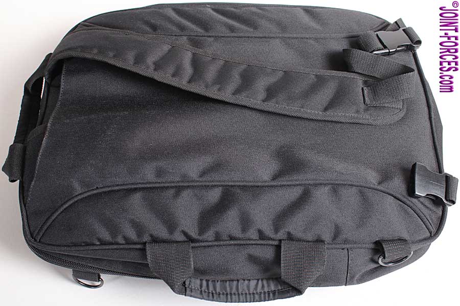 The thing I like best about the YDS Travel and Laptop Bag is the four different methods of carry: top grab handles; side grab handles; removable diagonal side strap, for single shoulder carry; and stowable padded shoulder straps, with quick release buckles. The latter stow away in a simple open pouch pocket on the back face when nor in use and one strap could be used for diagonal back carry if so desired. The grab handles are formed from nylon webbing, folded over for comfort, and the removable nylon diagonal side strap has a sliding shoulder pad.